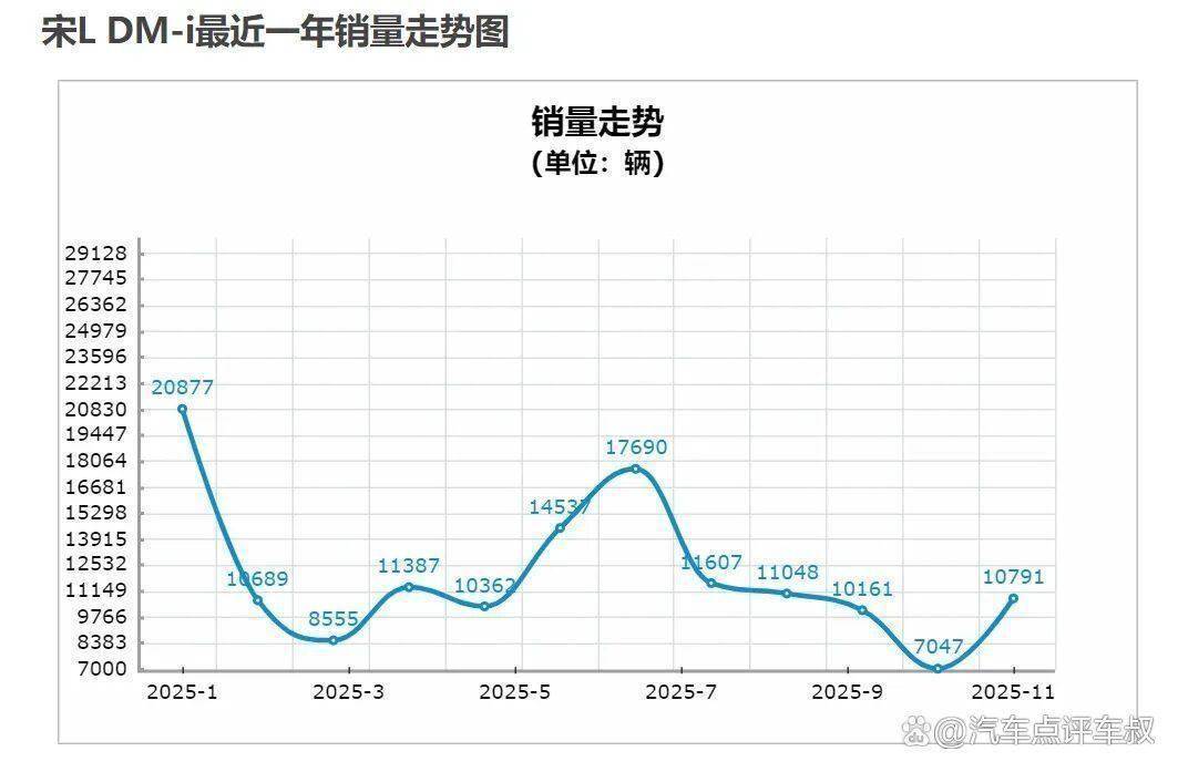 比亚迪宋L DM-i凭借品牌和工夫的双重上风,实现了“上市即爆款”。数据显现,自2024年7月底上市以来,宋L DM-i月均销量保持在万辆以上,其中,2025年11月销量为10791辆,而 本年1-11月累计销量为123874辆,展现了遒劲的品招牌召力。